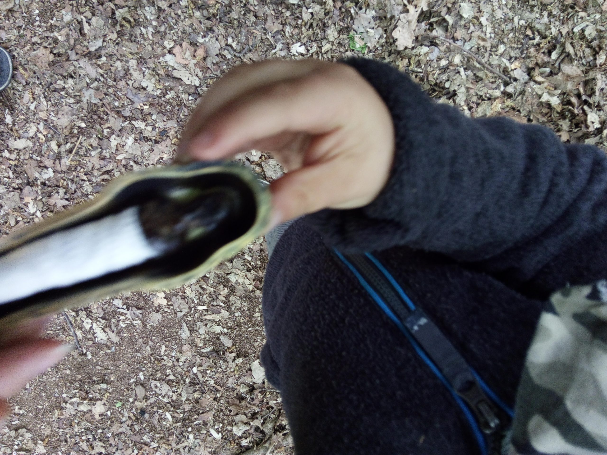 Łopatki poszły w ruch. Po chwili miarkowego kopania, łopata uderza o coś twardego. Cała ekipa wstrzymuje oddech, zaczynamy odgarniać suche liście i ziemię rękami. Czyżby nam się udało?? JEEEEST, jest jakieś zawiniątko. Błyszczy się w promieniach słońca przedostających się przez konary drzew, które teraz jakby się pochyliły chcąc również zobaczyć co jest w środku. Co za niesamowite odkrycie w lesie!
